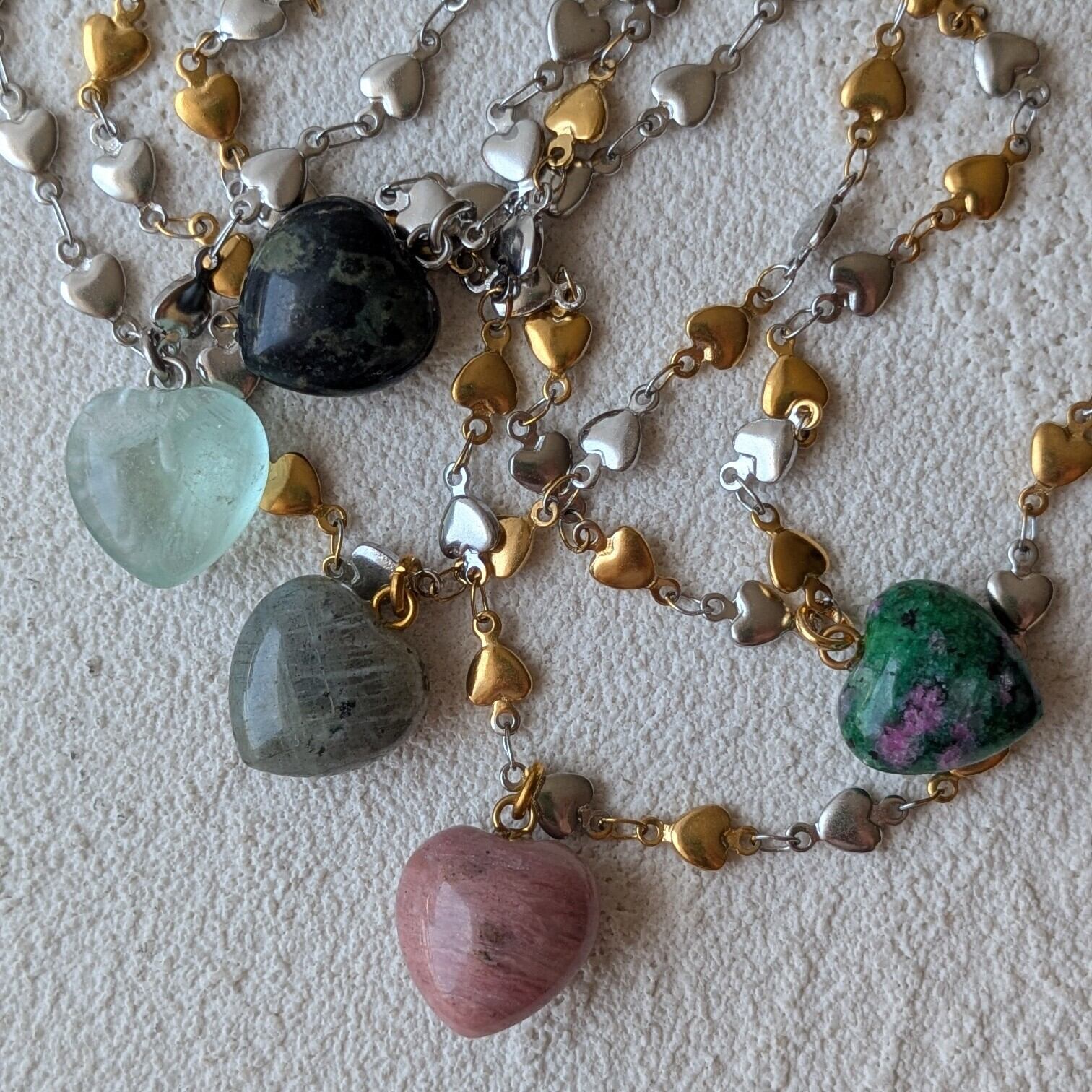 海外製チェーンを使用しているため、ハート1つ1つの大きさが全く同じでないため多少長さに誤差が出ます。